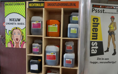 Chemsta basic/plus/speed/acceleratorChemsta Nederland produceert droogtijdversnellers en additieven voor zand cementdekvloeren en isolatiemortels.De criteria voor productontwikkeling vindt Chemsta Nederland in de behoeften van haar klanten. In het segment van droogtijdversnellers voor cementdekvloeren en isolatiemortels zijn de Chemsta producten een integraal en betrouwbaar onderdeel voor verantwoordelijk, snel, kostenbewust en modern bouwen.•Win tijd met de intelligente oplossingen van Chemsta Nederland – •Geniet van meer ruimte dankzij de intelligente oplossingen van Chemsta Nederland – Aantoonbare kostenbesparing door minder voorraad en dus verminderde voorfinanciering dankzij de droogtijdversnellers en additieven van de Chemsta productlijn.•Geniet van een professioneel en gepersonaliseerd advies met de intelligente oplossingen van Chemsta Nederland – Chemsta Nederland heeft voor u de juiste connecties, en op het juiste moment de juiste ideeën..•Alle Chemsta droogtijdversnellers zijn oplosmiddelen-en chloride vrij.